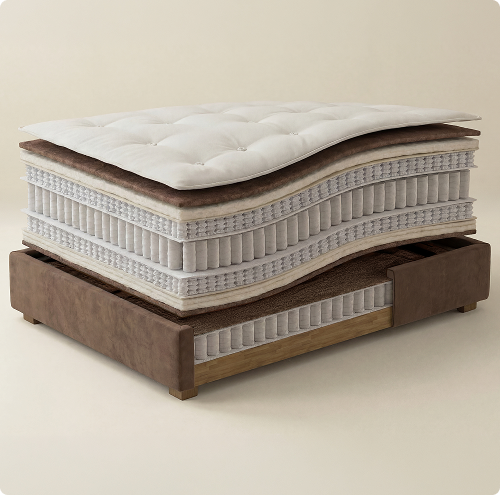 Eine schweizerische architektonische Meisterleistung, welche Natur, Technologie und Handwerkskunst vereint. Entwickelt von Schweizer Schlafarchitekten und vollendet durch Schweizer Handwerkskunst